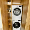 Electrocasnice moderne: frigider, mașină de spălat, uscător, plită cu inducție, cuptor cu microunde
