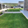 La exterior curtea este amenajată cu gazon și arbori ornamentali, zona de parcare auto amenajata, stradă privată, ideală pentru o familie care își dorește liniște, dar si apropiere de oraș.